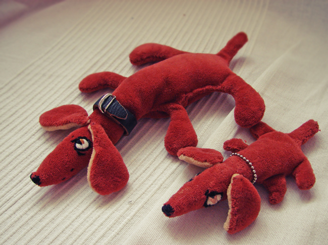 I've got no idea why, but i sew these toys during my early teenage years. I was especially into making neck pendants in a shape of small animals. They made great presents. And they also were more accurate than the big animals. Like the ones you see above. The dutch hound family and the hedgehog.